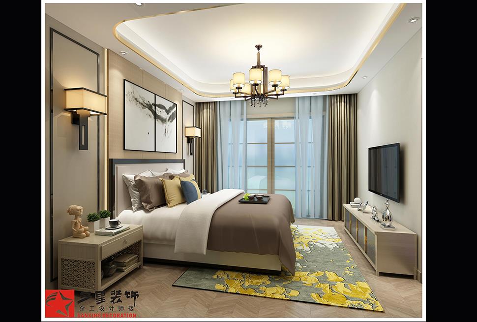 本案采用的是新中式的表現手法。現代生活節奏越來越快,新中式的裝修風格越來越受到大家的親睞,去煩為簡,讓人感受到自然的氣息。 讓自己在一天忙碌的工作中解放出來。實現舒適的居住生活。原木的色調實現了貼近自然的感覺,在這樣的居室環境里,一杯清茶,三兩好友,便可以使人有一種遠離喧囂,回歸寧靜之感,這也正是現代人所向往的生活。